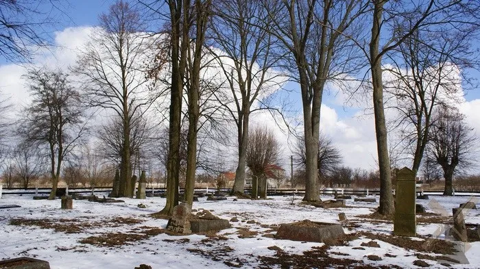 wsi i należy do jednych z najładniejszych i zadbanych żuławskich cmentarzy. Na ogrodzonym, zadrzewionym placu znajdują się
