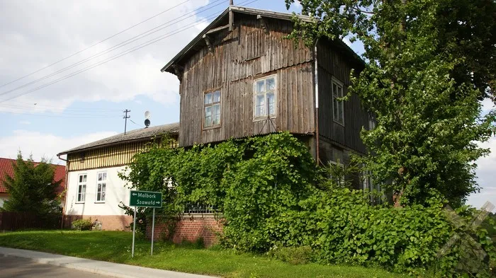 Ok. 150 m od domu piętrowego stoi parterowy, drewniany dom na ceglanej podmurówce, z małym gankiem i ryglowymi szczytami.