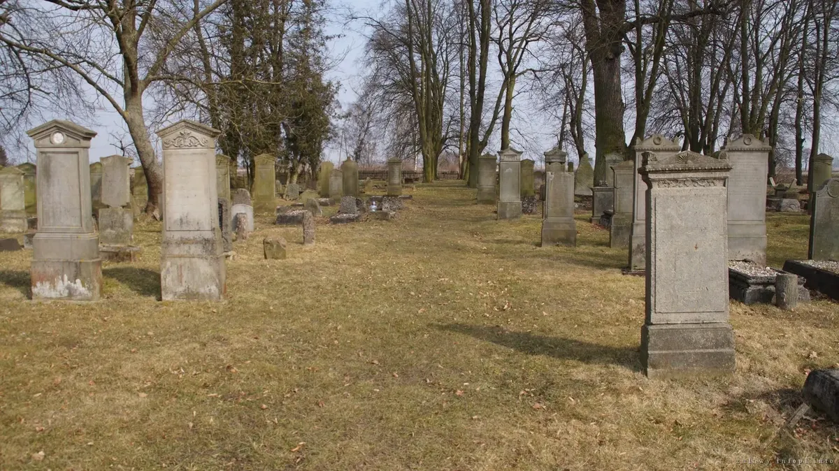 Pięknie zadrzewiony cmentarz liczy sobie około 100 nagrobków, gdzie w przeważającej części dominują piaskowcowe stele.
