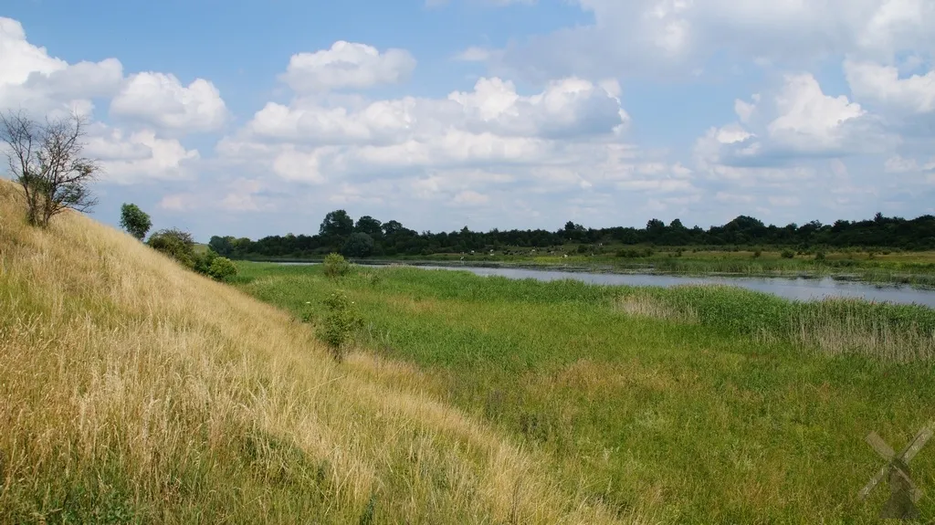 Niedzielny poranek nie był zbyt optymistyczny. Spore zachmurzenie i deszcz, co zniechęciło nas nieco do wyjazdu. Przypominając sobie sierpniową wycieczkę w 2013 r. i potworne błoto od śluzy Michałowo do wsi Lubstowo, przygotowałem trasę awaryjną. Optymistycznie jednak wyglądało niebo po stronie wschodniej, a przecież to w tamtym kierunku biegła ustalona wcześniej trasa. Z godzinnym opóźnieniem ruszyliśmy na szlak. Drogą nr 22 dotarliśmy do Zarzecza. Tam skręciliśmy w lewo i wzdłuż wału Nogatu dojechaliśmy do Królewa. Minęliśmy kościół i zatrzymaliśmy się w parku. Tam moje ulubione drzewo- potężna topola osika, o obwodzie 9,15 m zachorowało, ale mam nadzieję, że spróchnienie nie pójdzie głębiej i ten kolos jeszcze długo będzie zdobił królewski park. Następnie, mijając kapliczkę oraz widoczną z oddali zabudowę dworską, zdobioną sterczynami z rzeźbami lwów, skierowaliśmy się do Kaczynosu. Zatrzymaliśmy się w miejscu dawnego kościoła i cmentarza, na którym znajdują się resztki nagrobków. Przez lasy janowskie i Letniki dobrnęliśmy do śluzy Michałowo.