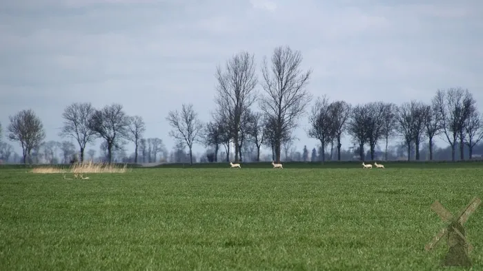 Zaraz za Kałdowem, z krzaków wyskoczyła sarna, ale ku mojemu zaskoczeniu nie uciekała, lecz stanęła w odległości ok. 15-20 m ode mnie, do momentu, gdy ruszyłem ręką, sięgając po aparat. Sarny w tym dniu były dodatkową ozdobą żuławskiego krajobrazu, a spotykałem je bardzo często, czasem zupełnie niespodziewanie, gdy przecinały mi drogę.