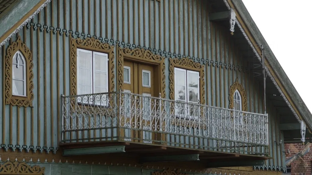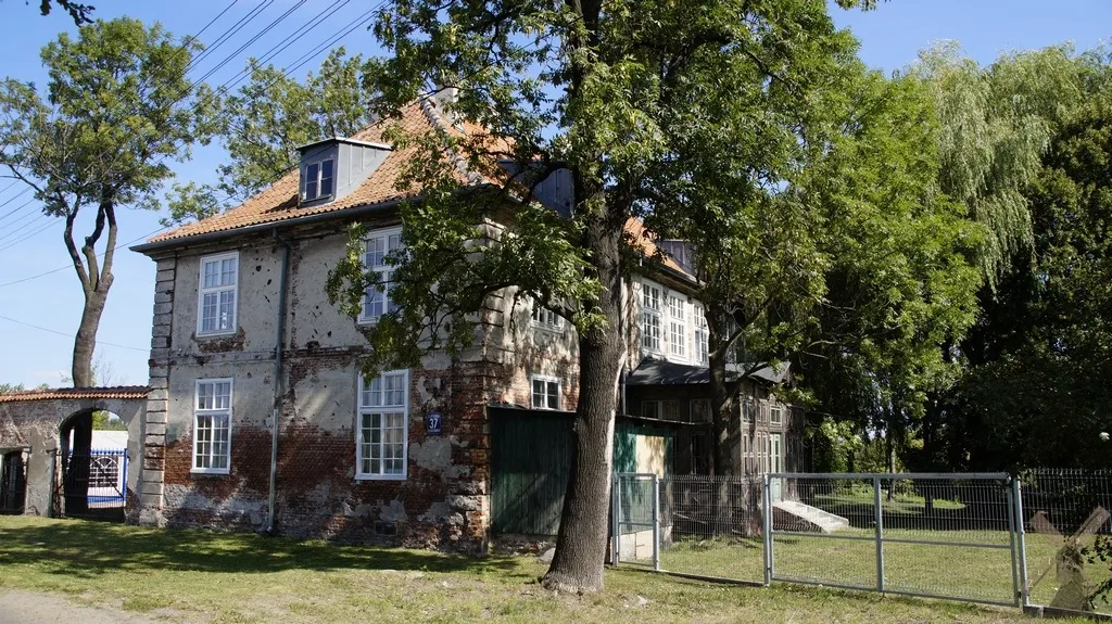 Kolejny etap wycieczki biegł asfaltową drogą przez Pręgowo Żuławskie. Zanim tam jednak dotarliśmy, minęliśmy cmentarz, lapidarium i dom podcieniowy w Pordenowie. W Pręgowie Żuławskim zatrzymaliśmy się przy jednym z najbogatszych w detale, żuławskich domów.