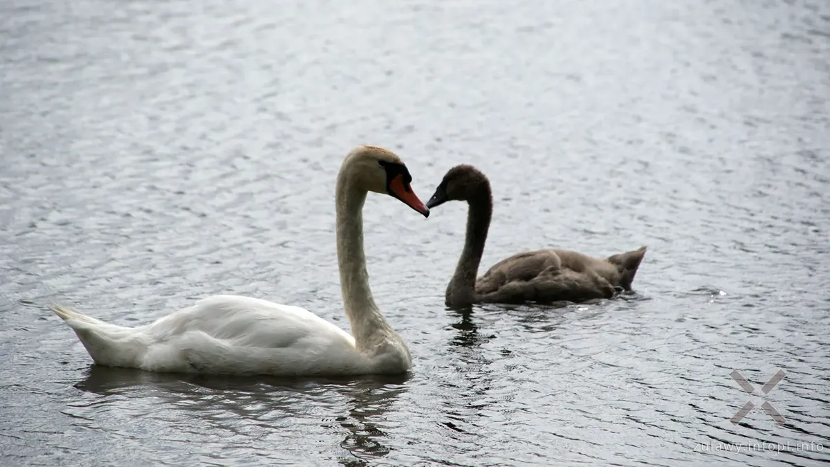 Młode, nurkujące łabędzie z Żuławek