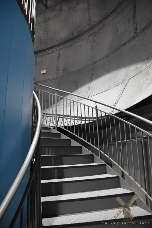 Na taras widokowy wieży możemy dotrzeć tylko schodami, gdyż winda kursuje do trzeciego piętra. Nad nim usytuowany jest zbiornik, który mógł pomieścić do 500 m³ wody. Przez wycięcie w nim otworu, we wnętrzu zbiornika powstała dodatkowa kondygnacja.