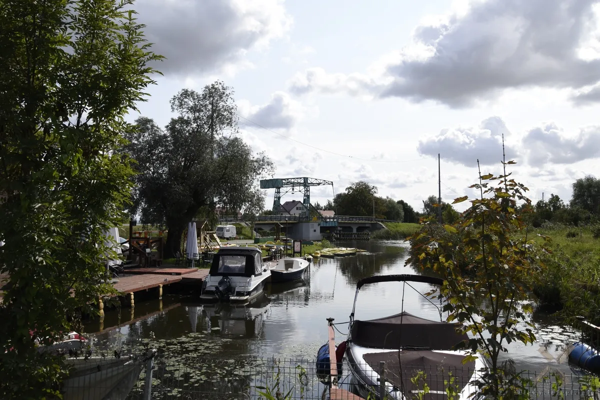 Układ oficjalnego szlaku pozwolił na małą modyfikację i zjazd z niego w Sztutowie. Tam zwiedziliśmy muzeum Stutthof utworzone staraniem byłych więźniów KL Stutthof oraz most „Czterech Pancernych”, na którym załoga „Rudego” zdobywała nadrzeczny przyczółek w odcinku „Daleki Patrol”. Zanim to jednak nastało, na samym starcie zwiedziliśmy kościół pw. Najświętszego Serca Pana Jezusa w Stegnie.