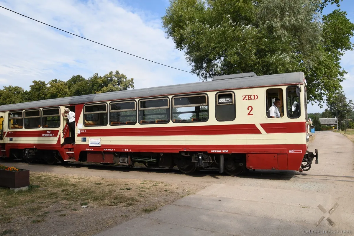 Kolejka z Nowego Dworu Gdańskiego odjeżdża o godz. 8:30, więc z samego rana, w przyjemnym chłodzie, choć przy zachmurzonym niebie, przebiega pierwsza część trasy. Od Nowego Stawu jedziemy już w dwójkę. Do stacji ŻKD w Nowym Dworze Gdańskim dojeżdżamy 10 minut przed czasem i kolejką ruszamy w kierunku Mikoszewa, do stacji końcowej- Prawy Brzeg Wisły. Żuławska Kolej Dojazdowa w swych składach posiada teraz bufet kolejowy z lodami, herbatą, kawą i zimnymi napojami.