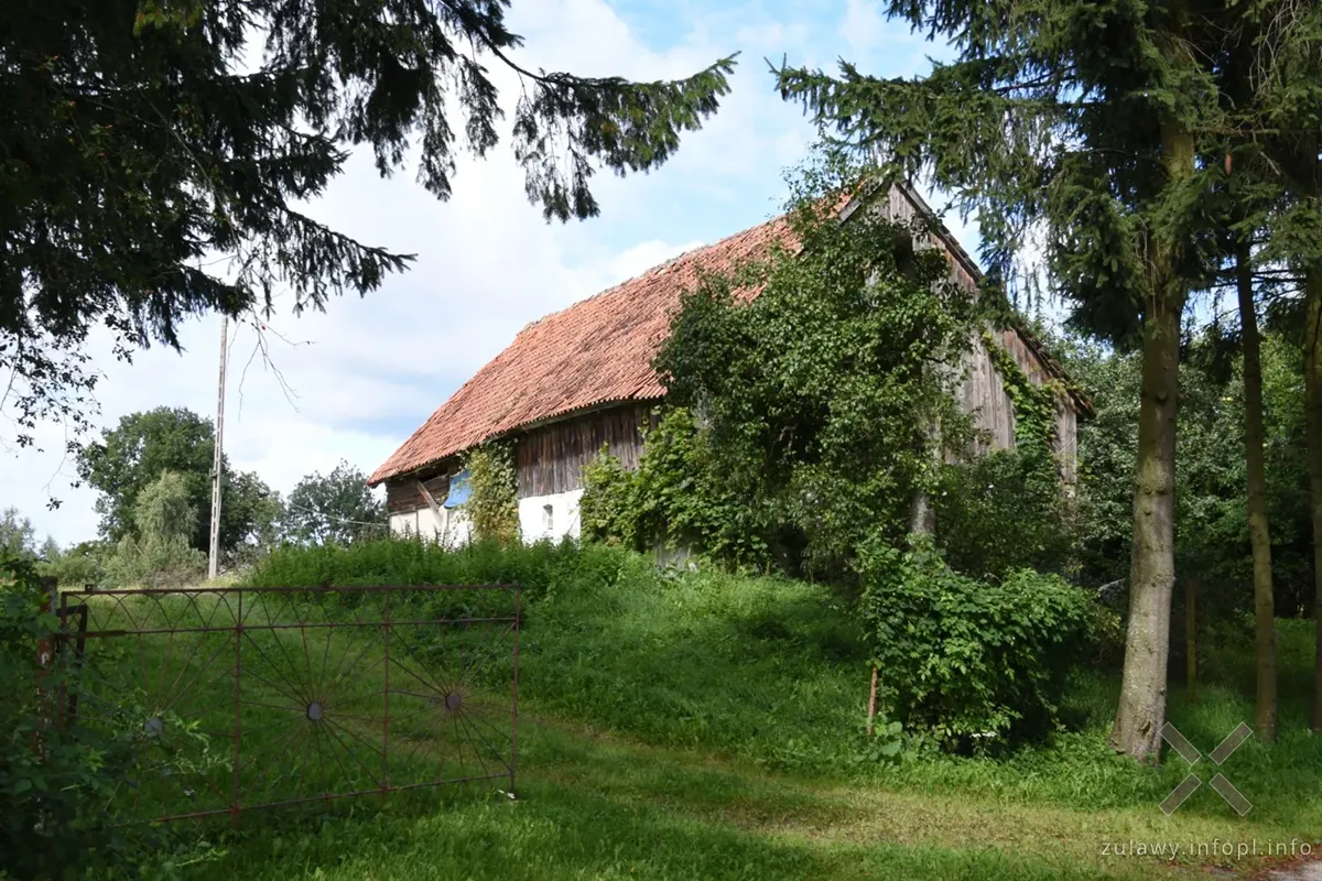 Druga część wycieczki zaczęła się od 3 km odcinka, mało przyjemną drogą wojewódzką nr 503. Zapewne do lasu można wjechać od razu, ale las ten trzeba znać. Za Jagodnem zaczęła się wspinaczka na Wysoczyznę Elbląską i tak to się ciągnęło aż do Próchnika. To najdalej wysunięta na północ dzielnica Elbląga, w której znajdują się cztery domy podcieniowe i kościół gotycki. Próchnik, miałem okazję zwiedzić w 2013 r. podczas wycieczki rowerowej „Z Tolkmicka do Elbląga”. Pamiętając mniej więcej usytuowanie domów podcieniowych, trzy udało się zlokalizować bez problemu, natomiast z jednym pojawił się problem. Dopiero przy trzecim podejściu, w miejscu mocno zasłoniętym przez roślinność udało się go odnaleźć. Najlepiej prezentuje się tu dom murowany z czerwonej cegły zlokalizowany przy ul. Strumykowej, w zachodniej części dzielnicy.