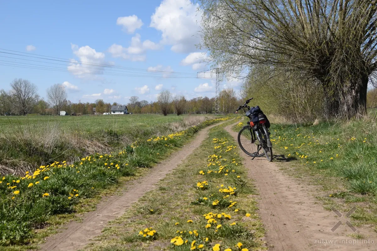 Większa przyjemność z jazdy miała miejsce po przekroczeniu Nogatu i zjeździe w boczną drogę, lecz jednak dopiero w okolicach Wężownicy / Solnicy, gdy nowa droga S7 zniknęła całkowicie z oczu i z uszu, pojawiło się to coś. W połączeniu z pogodą był to czas, który mógłby trwać jak najdłużej. Podobnie jak dwa dni temu, również i teraz pojawiła się niechęć do opuszczania tak ładnego terenu. Dziś była to pięknie położona Solnica. Wieś charakteryzuje się licznymi zbiornikami wodnymi, od wschodu odseparowana kanałem Izbowa Łacha, a od zachodu Kanałem Panieńskim, opisanym na niektórych mapach jako Panieńska Łacha. Przez tereny te biegnie czerwony szlak Kopernikowski, którym w dużym fragmencie miałem okazję wracać do Malborka.