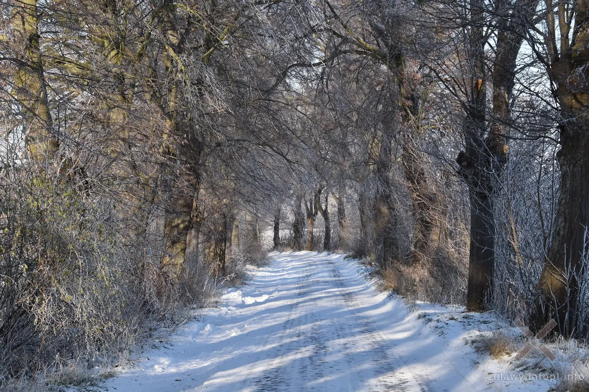 To, czego nie dały wczoraj Żuławy Wiślane, w pełni oddało dziś Powiśle. Mróz, słońce i pozostałości szadzi, która zachowała się na części drzew od strony północnej, towarzyszyły w niedzielę na całej trasie. Choć zimą, tak jak to było w grudniu poprzedniego roku, pogoda potrafi zmienić się w ciągu kilku minut, to dzisiaj było bardzo stabilnie od rana aż do wieczora. Idąc białą aleją, można było odnieść wrażenie padającego śniegu przy bezchmurnym niebie, ale to tylko drzewa zrzucały to, co na nich zalegało od dwóch dni.