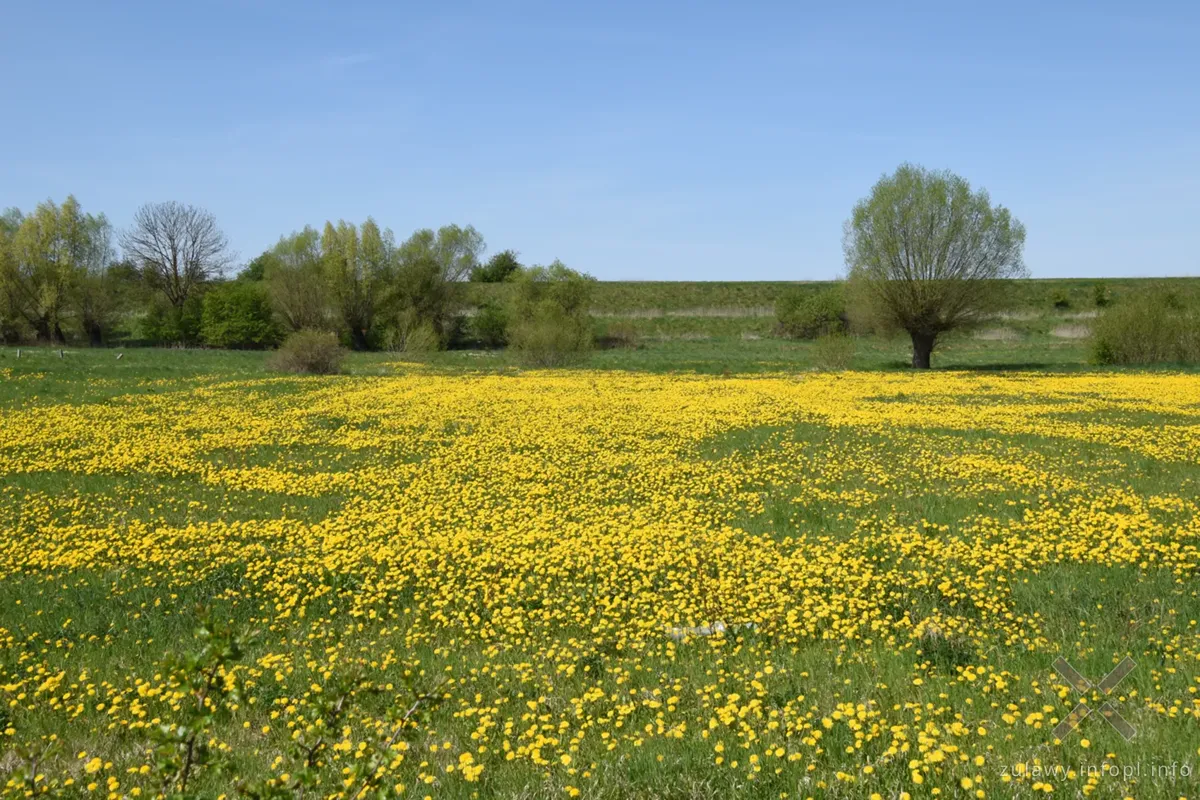 Oprócz kwitnącego rzepaku całą trasę zdobiły kwiaty mniszka pospolitego, który oprócz tego, że gęsto porastał brzegi dróg, w niektórych miejscach tworzył piękne, żółte łąki. Można odnieść wrażenie, że roślina ta z roku na rok coraz gęściej porasta żuławskie pola.