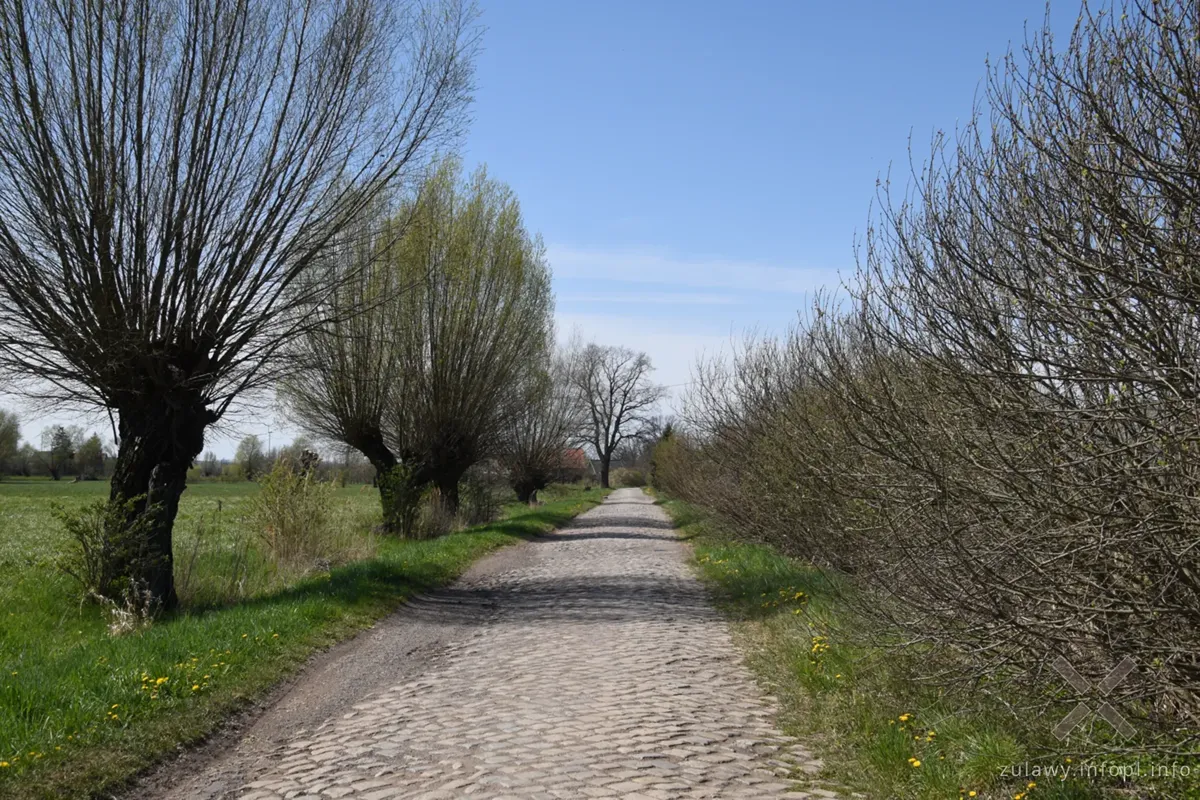 Celem sobotniej wycieczki były między innymi Karczowiska Górne. Ze względu na konieczność wykorzystania fragmentu drogi nr 22, miejscowość była trochę pomijana w całym dziesięcioleciu zwiedzania Żuław. Niebezpieczny odcinek nie jest tu zbyt długi, ale skoro dzisiaj udało się znaleźć polny, choć niezbyt pewny skrót, można było uniknąć głośnej drogi krajowej. Z Karczowisk Górnych do Raczków Elbląskich można również przedostać się piękną aleją wierzbową, którą dzisiaj miałem okazję spenetrować.