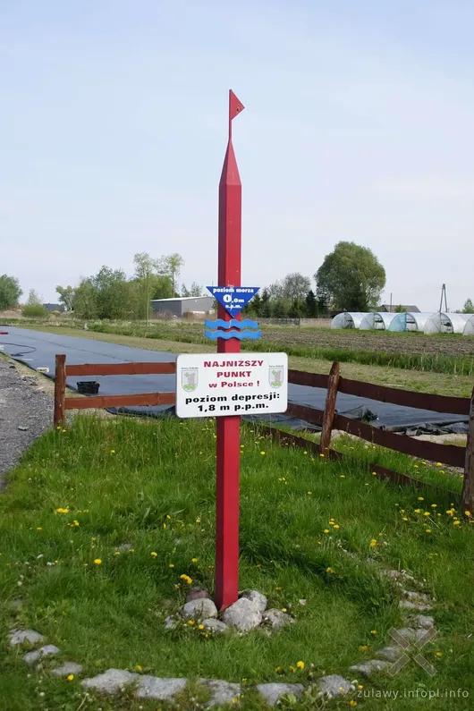 od miasta Elbląg. Wzmiankuje się o istnieniu wsi w roku 1586. Uznawany za najniżej położony punkt depresyjny w Polsce (1,8 m p.p.m.) znajdował się w Raczkach Elbląskich. Kilkuletnie oczekiwania wcześniejszych odkryć sprawiły, że najniżej położonym miejscem w Polsce, oficjalnie od 2022 r. stały się okolice Marzęcina (2,2 m p.p.m.).